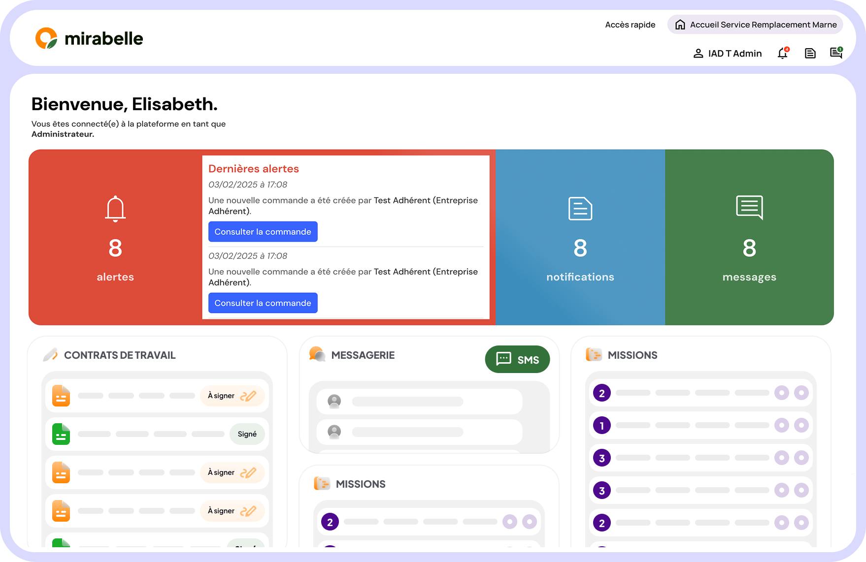 Avec l'application mirabelle, tout devient plus fluide : suivez vos missions, saisissez vos heures et accédez à vos documents où que vous soyez. Salarié ou adhérent, restez connecté à votre groupement en temps réel : notifications, échanges simplifiés, contrats et affectations centralisés. Fini les multiples outils : gérez tout depuis une seule application, gratuite, intuitive et sécurisée.